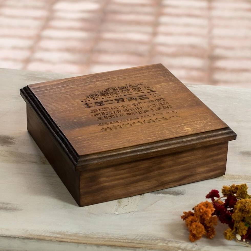 Collectible Guatemalan Handcrafted Wood 8-Inch Tea Box 'Dresden Codex' Item ID: 2671778749