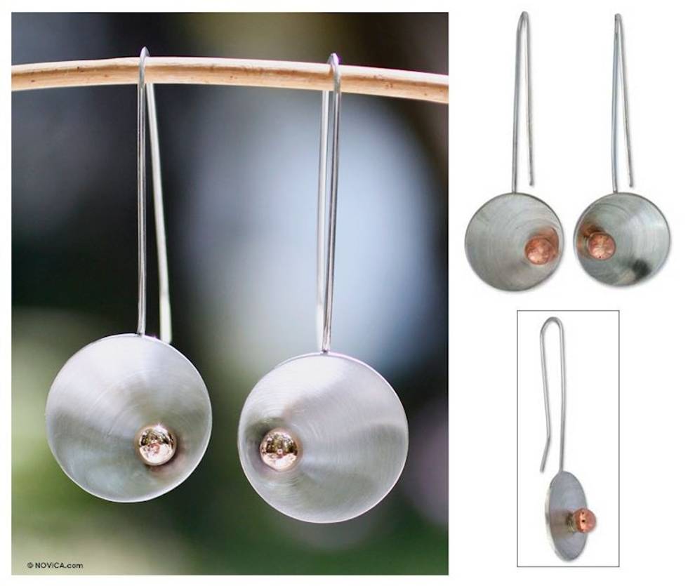 Collectible Modern Copper and Sterling Silver Drop Earrings 'Solitaire Sun' Item ID: 2671808823