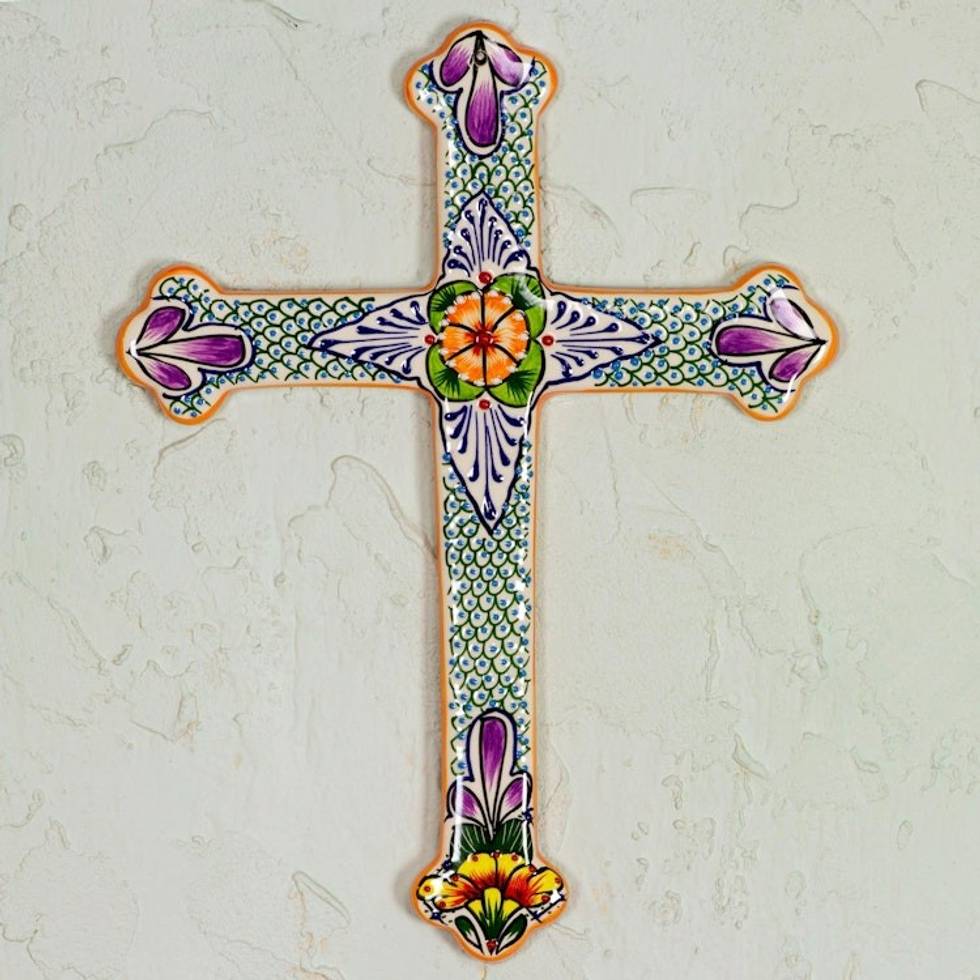 Collectible Talavera Ceramic Cross 'Morning Glory' Item ID: 2669939328