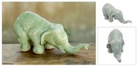 Collectible Thai Celadon Ceramic Sculpture 'Green Elephant Sawasdee' Item ID: 2671802754