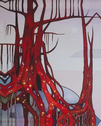 Color Gicle Print on Canvas of a Red Tree from Mexico 'Red Tree with Golden Roots' Item ID: 2671808809