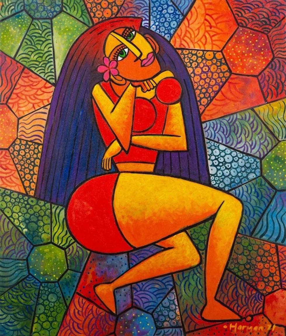 "My name is Harman and I was born in Java on May 2, 1971. Since I was a child I loved art very much. I had a dream of becoming a professional painter so I tried hard to learn painting. I studied at SMSR Yogyakarta in 1987-1991, and at ISI (Indonesian School of Art), I took the program of Interior Design until I graduated in 1996. Besides learning painting in a formal way, I also studied with a senior painter, Dulah.