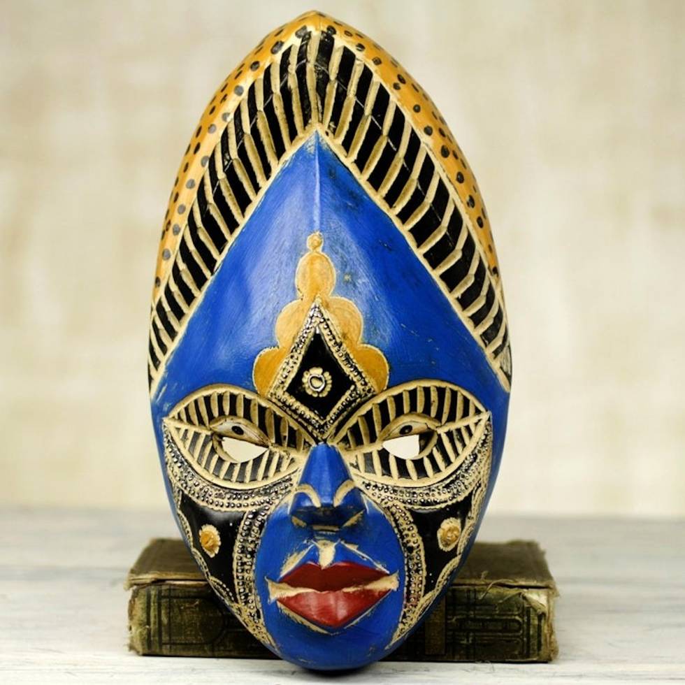 Colorful Aluminum African Wood Mask from Ghana 'Ndidi' Item ID: 2671801127