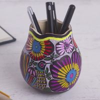 Colorful Bird and Flowers Hand Painted Gourd Desk Accessory 'Whistle While You Work' Item ID: 2669891233