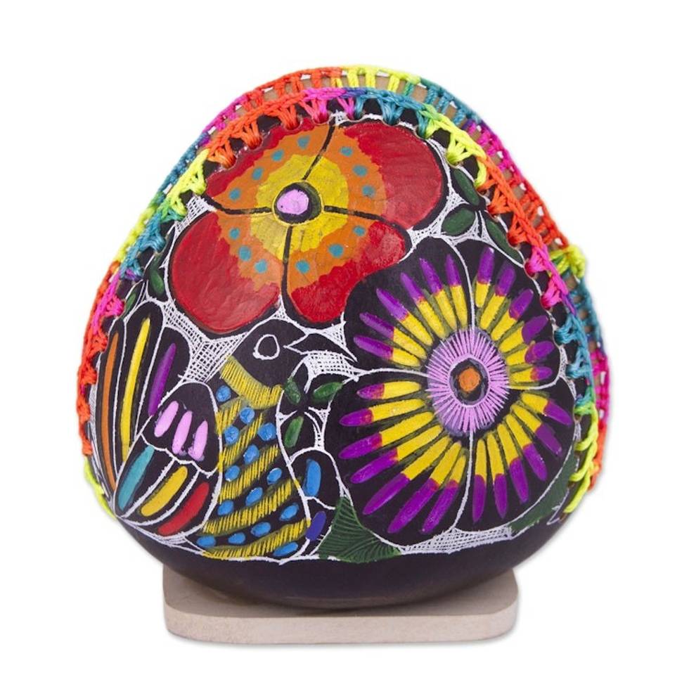 Colorful Bird and Flowers Hand Painted Gourd Napkin Holder 'Birdsong Bloom' Item ID: 2671400669