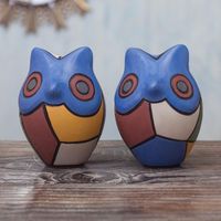 Colorful Ceramic Chulucanas Owl Sculptures Pair 'Cubist Owls in Blue' Item ID: 2671690553