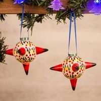 Colorful Ceramic Piata Ornaments from Mexico Pair 'Fiery Piatas' Item ID: 2671808167