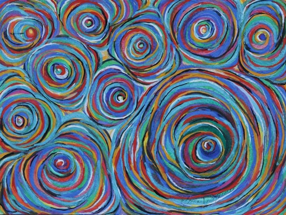 Colorful Circle Motif Abstract Watercolor Painting 'Solar System IV' Item ID: 2669903848