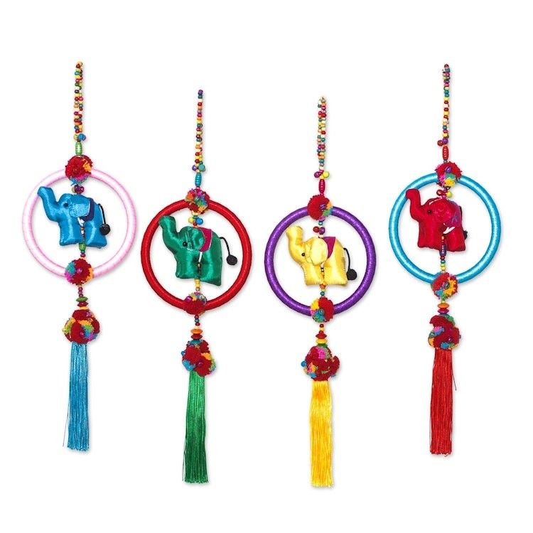 Colorful Cotton Blend Elephant Ornaments Set of 4 'Elephant Rainbow' Item ID: 2671798433