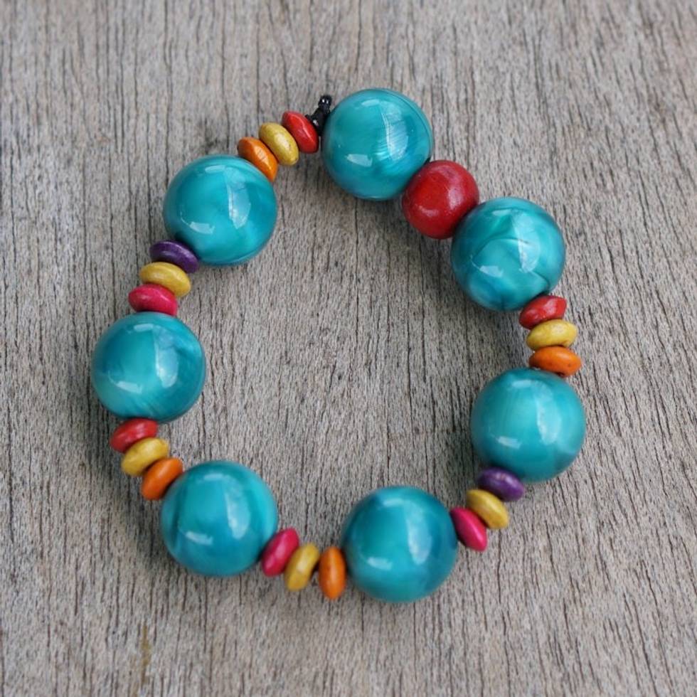 Colorful Eco-Friendly Beaded Stretch Bracelet from Ghana 'Waves of Happiness' Item ID: 2671805061