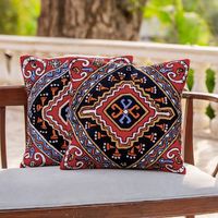 Colorful Embroidered Cotton Cushion Covers from India Pair 'Creative Kite' Item ID: 2671792505