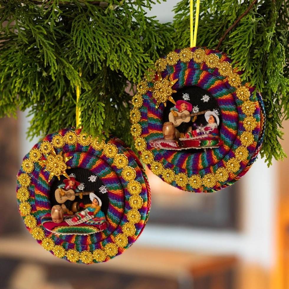Colorful Fabric Nativity Ornaments Pair 'Lullaby in the Andes' Item ID: 2669891469