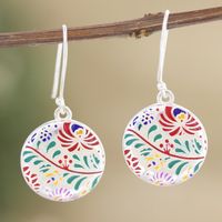 Colorful Floral Sterling Silver Dangle Earrings from India 'Jaipur Garden' Item ID: 2671786530