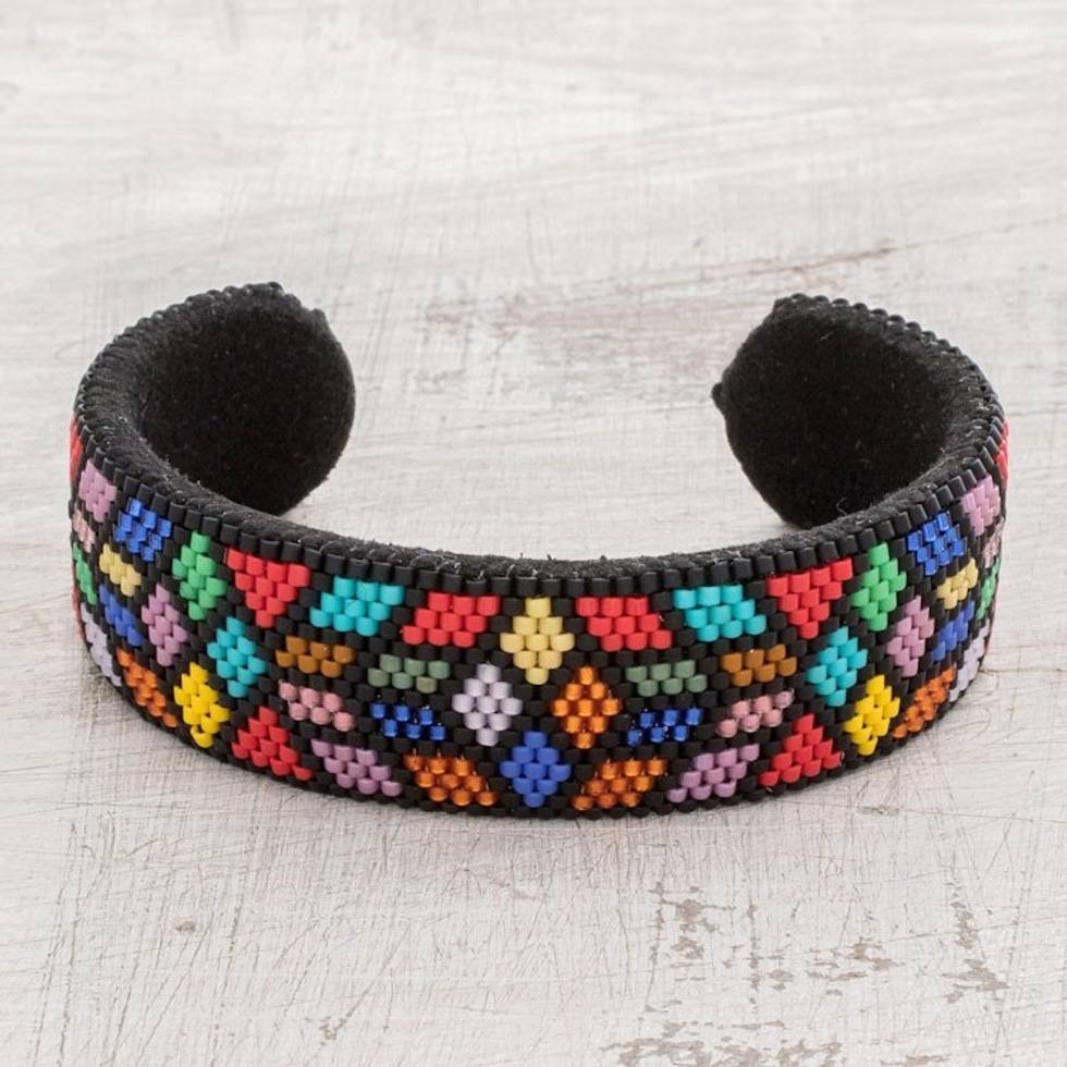 Colorful Geometric Glass Beaded Cuff Bracelet 'Rainbow Geometry' Item ID: 2671777243