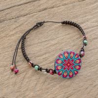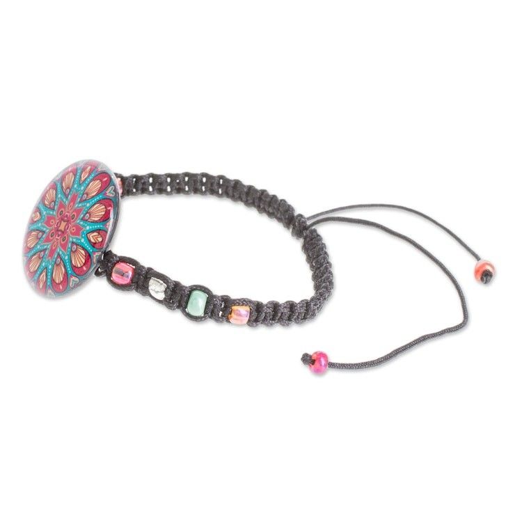 Colorful Glass Beaded Macrame Pendant Bracelet 'Mesmerizing Colors' Item ID: 2671777046