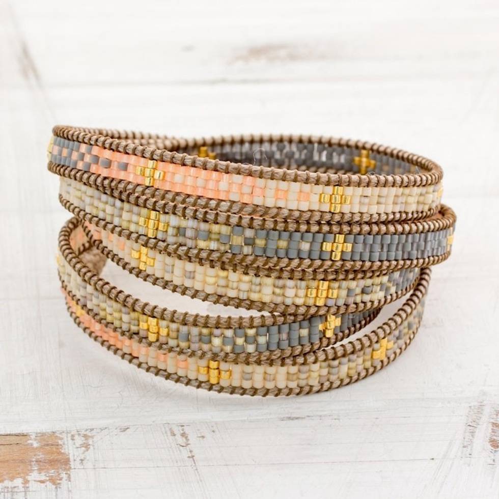 Colorful Glass Beaded Wrap Bracelet from Guatemala 'Cerro de la Cruz in Grey' Item ID: 2671656319