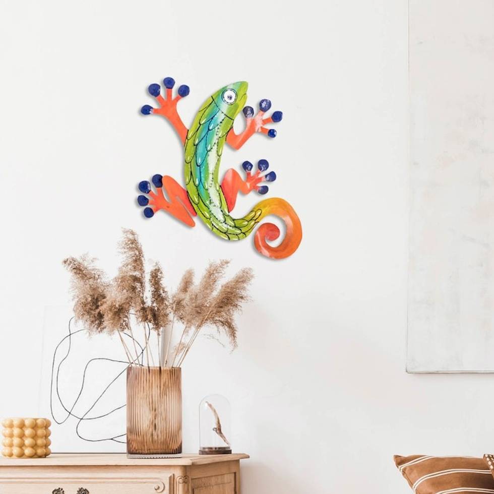 Colorful Hand-Painted Tropical Lizard Steel Wall Art 'Lovely Lizard' Item ID: 2671768946