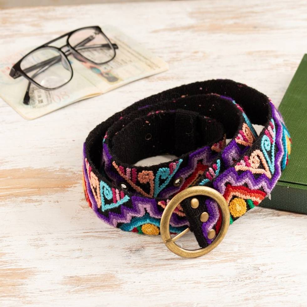 Colorful Hand-Woven Hand-Embroidered Wool Belt from Peru 'Colorful Symphony' Item ID: 2669891120