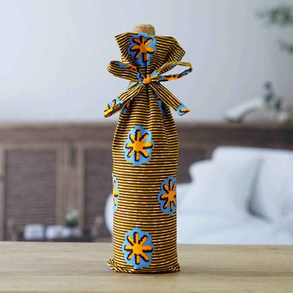 Colorful Handmade 100 Cotton Wine Bottle Cover from Ghana 'Cheerful Toast' Item ID: 2671805104