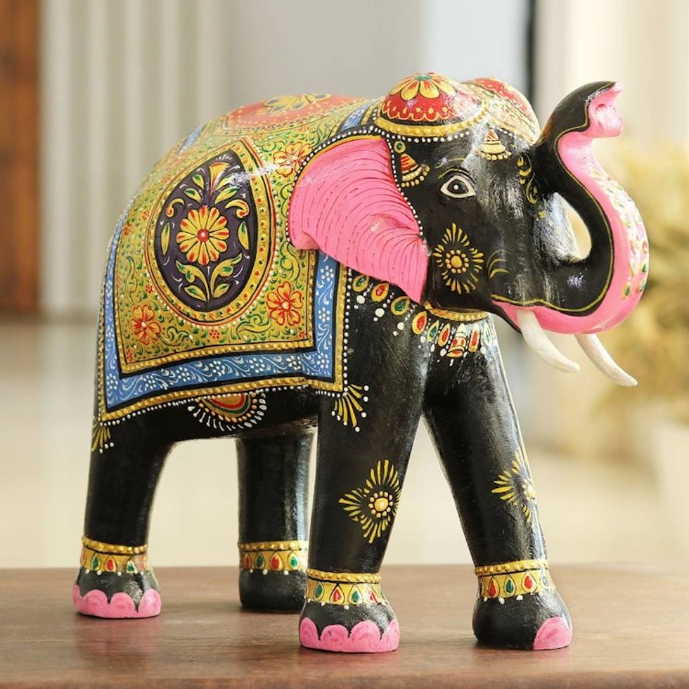 Colorful Handpainted Elephant Sculpture from India 'Splendid Elephant' Item ID: 2671789992