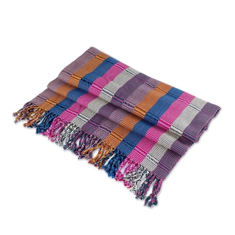 This is a beautifully made shawl. As a floor-loom weaver, I appreciate hand-made textiles, and this piece was clearly woven by an accomplished fiber artist. The weave is firm enough to make a sturdy fabric, but it also has a lovely drape. The colors are gorgeous. And, even though it's cotton, it's heavy enough to keep me warm here in Northern Minnesota in winter. This is a piece that I will have for a very long time and which will age well. Thank you Elena Ixtamer!