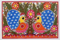 Colorful Madhubani Painting of Peacocks from India 'Spring Song' Item ID: 2671793341