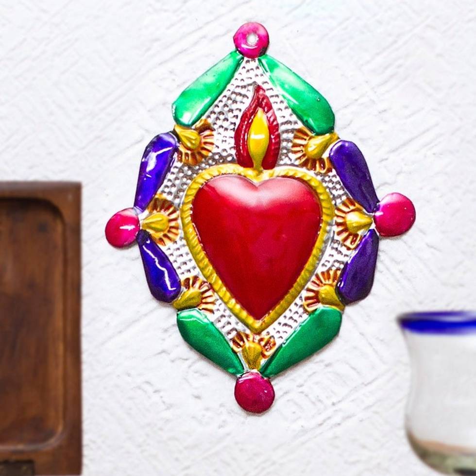 Colorful Metal Wall Accent from Mexico 'Heart of Miracles' Item ID: 2671807314