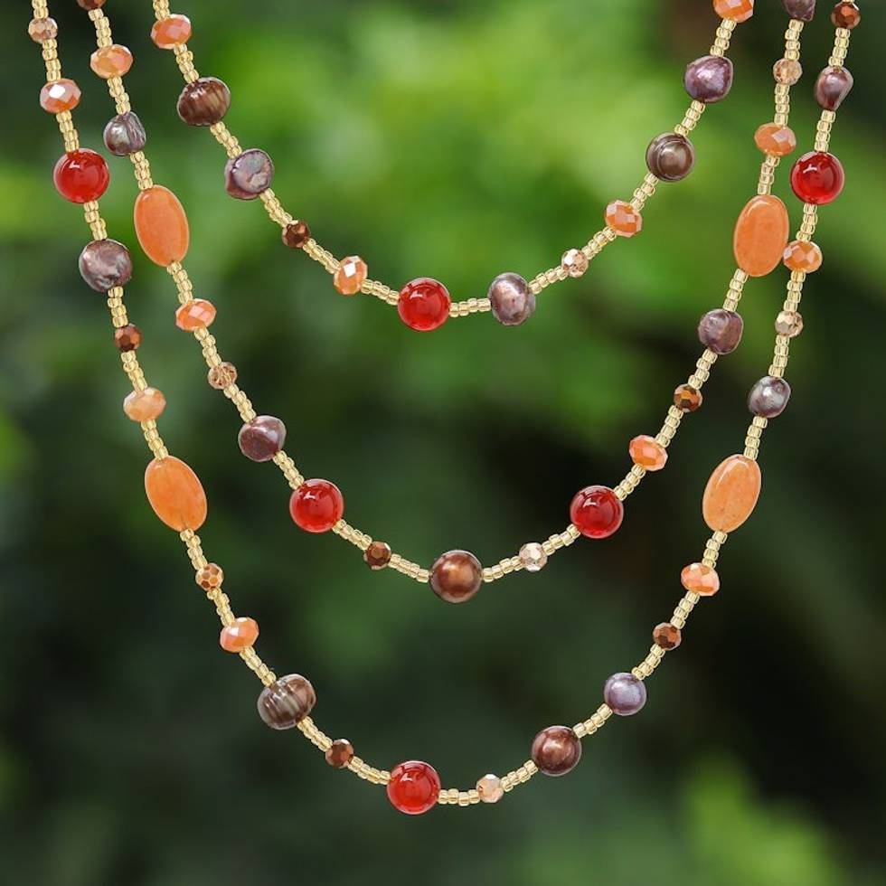 Colorful Multi-Gemstone Beaded Strand Necklace from Thailand 'Fancy Orange' Item ID: 2669926393
