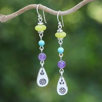 Colorful Multi-Gemstone Dangle Earrings with Silver Accents 'Thail Chic' Item ID: 2671796832