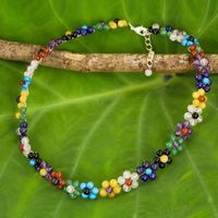 Colorful Multi Gemstone Flower Necklace from Thailand 'Rainbow Blooms' Item ID: 2669927962