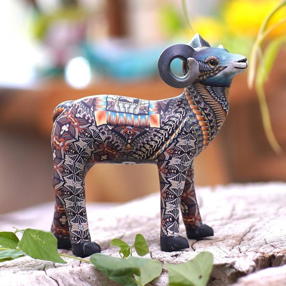 Colorful Polymer Clay Ram Sculpture 4.7 Inch from Bali 'Vibrant Ram' Item ID: 2671733312