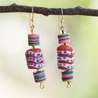 Colorful Recycled Plastic and Glass Beaded Dangle Earrings 'Euphoric Sense' Item ID: 2671804922