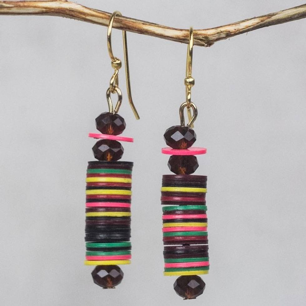 Colorful Recycled Plastic Disc Dangle Earrings from Ghana 'Joyful Tower' Item ID: 2671806307