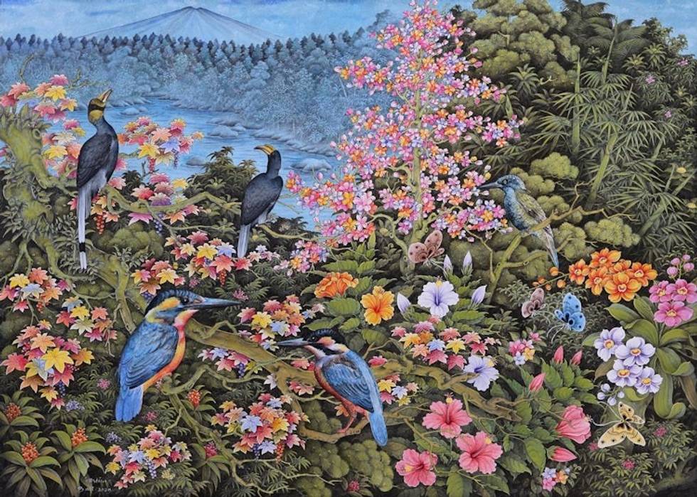 "The natural world, its flora and fauna, is what mostly inspires me to paint. Mixing colors and transfering my ideas into the media is what gives me the greatest joy and pleasure. I have been in exhibitions in Japan, at Barwa gallery and at my university at STKIP Singaraja. I've also received a prize from my university for the best traditional painting."