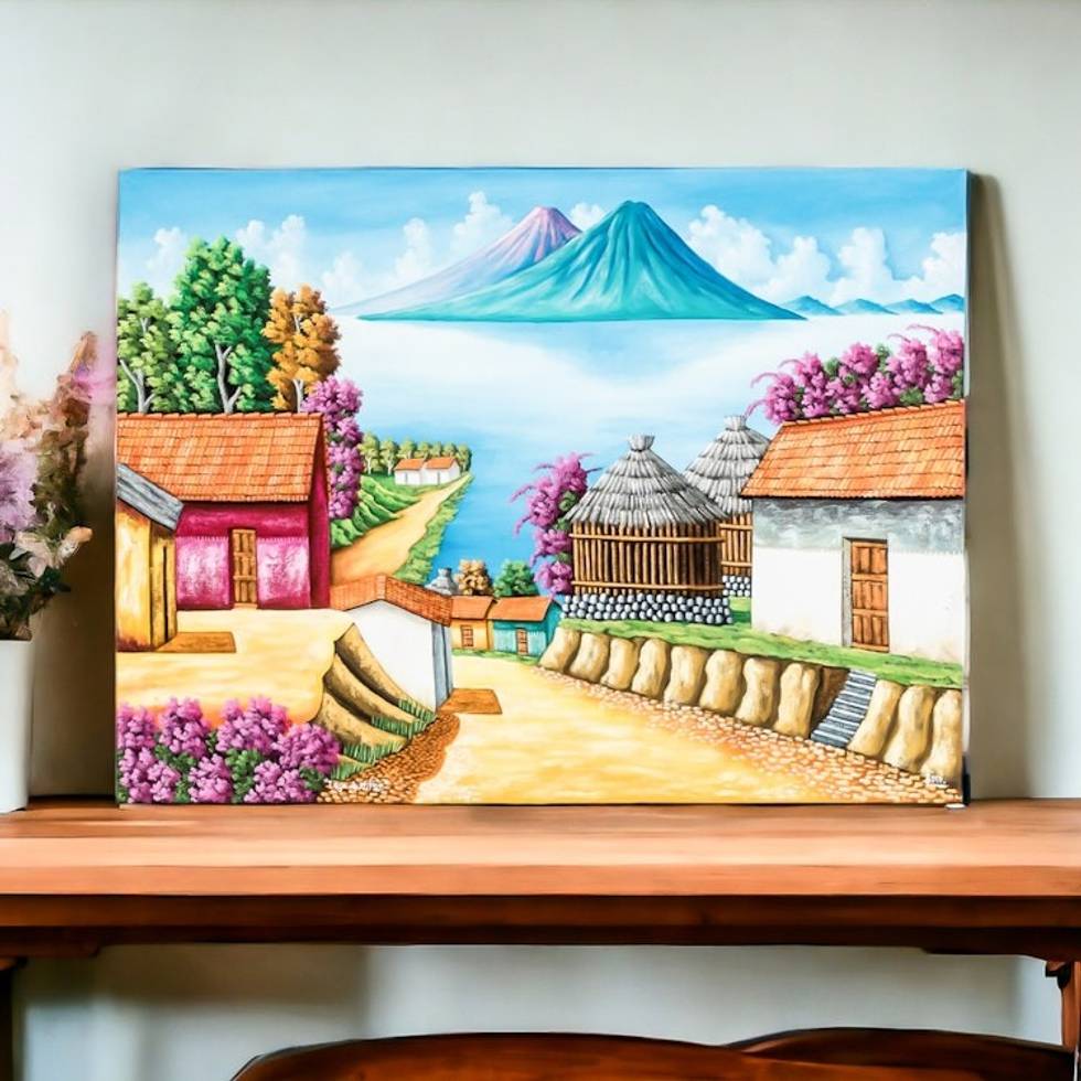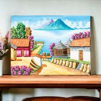 Colorful Signed Oil Painting of Lake Atitlan 'Lake Atitlan' Item ID: 2671780004