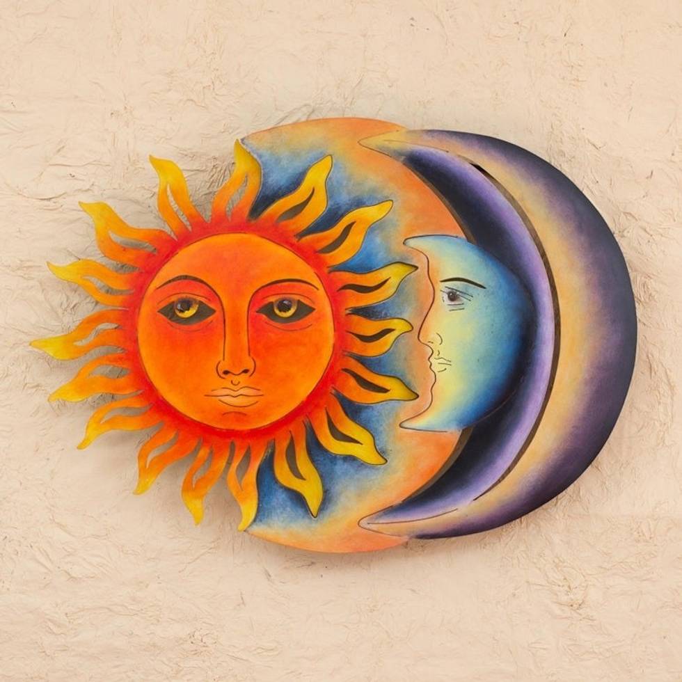 Colorful Steel Sun and Moon Eclipse Wall Art Sculpture 'Festive Eclipse' Item ID: 2671639032