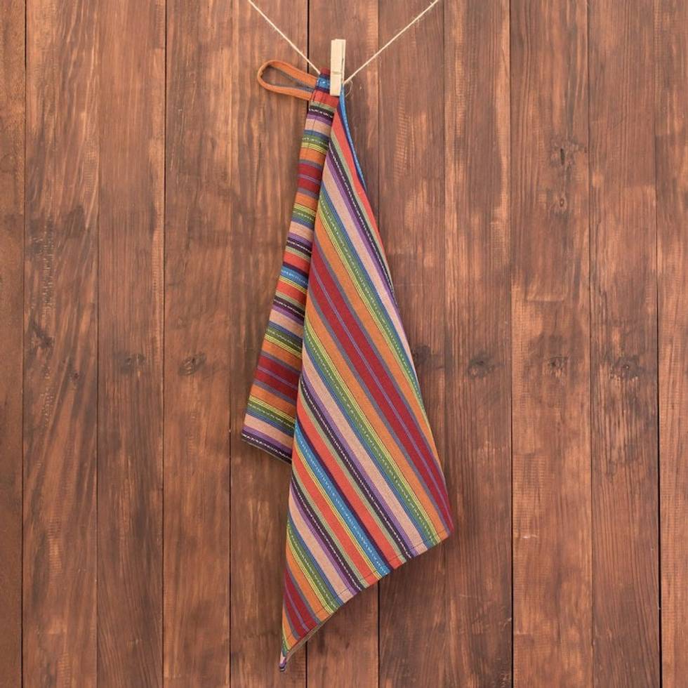Colorful Striped Cotton Dish Towel Hand-Woven in Guatemala 'Traditional Colors' Item ID: 2671626944