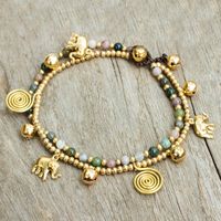 Colorful Thai Agate Bell Anklet with Brass Beads and Charms 'Elephant Bells' Item ID: 2671640891