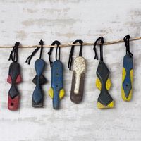 Colorful Wood African Mask Ornaments from Ghana Set of 6 'Afadjato Masks' Item ID: 2671806132
