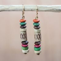 Colorful Wood and Recycled Plastic Dangle Earrings 'Eco Beauty' Item ID: 2671806555