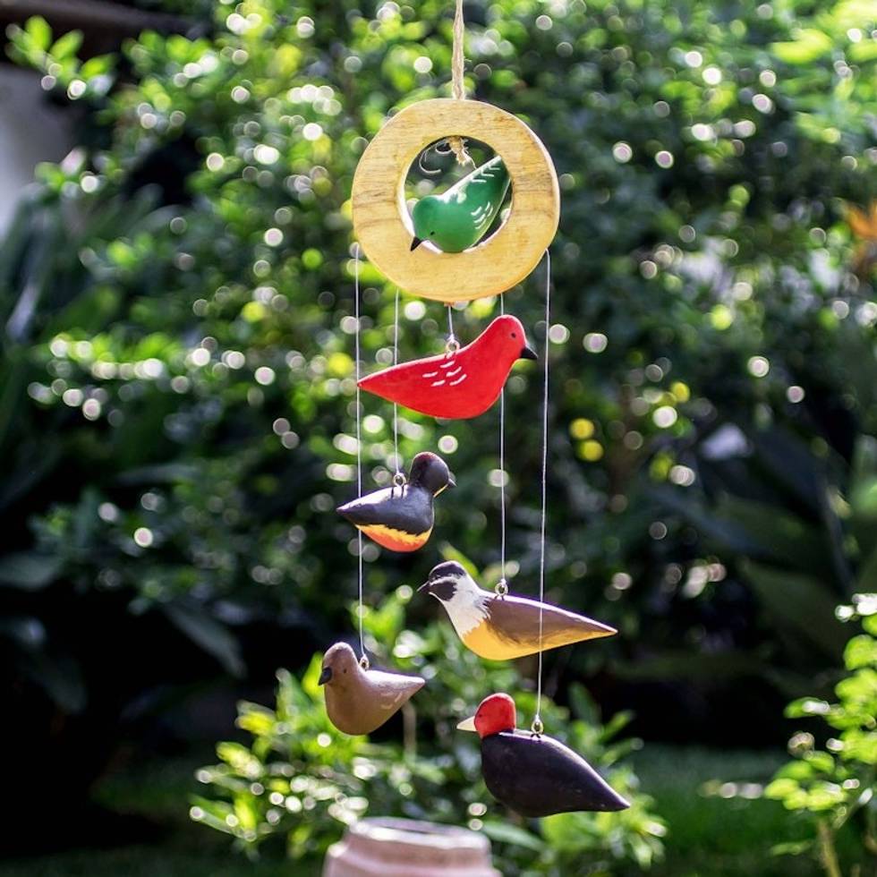 Colorful Wood Bird Mobile 'Birds of a Feather' Item ID: 2671776998