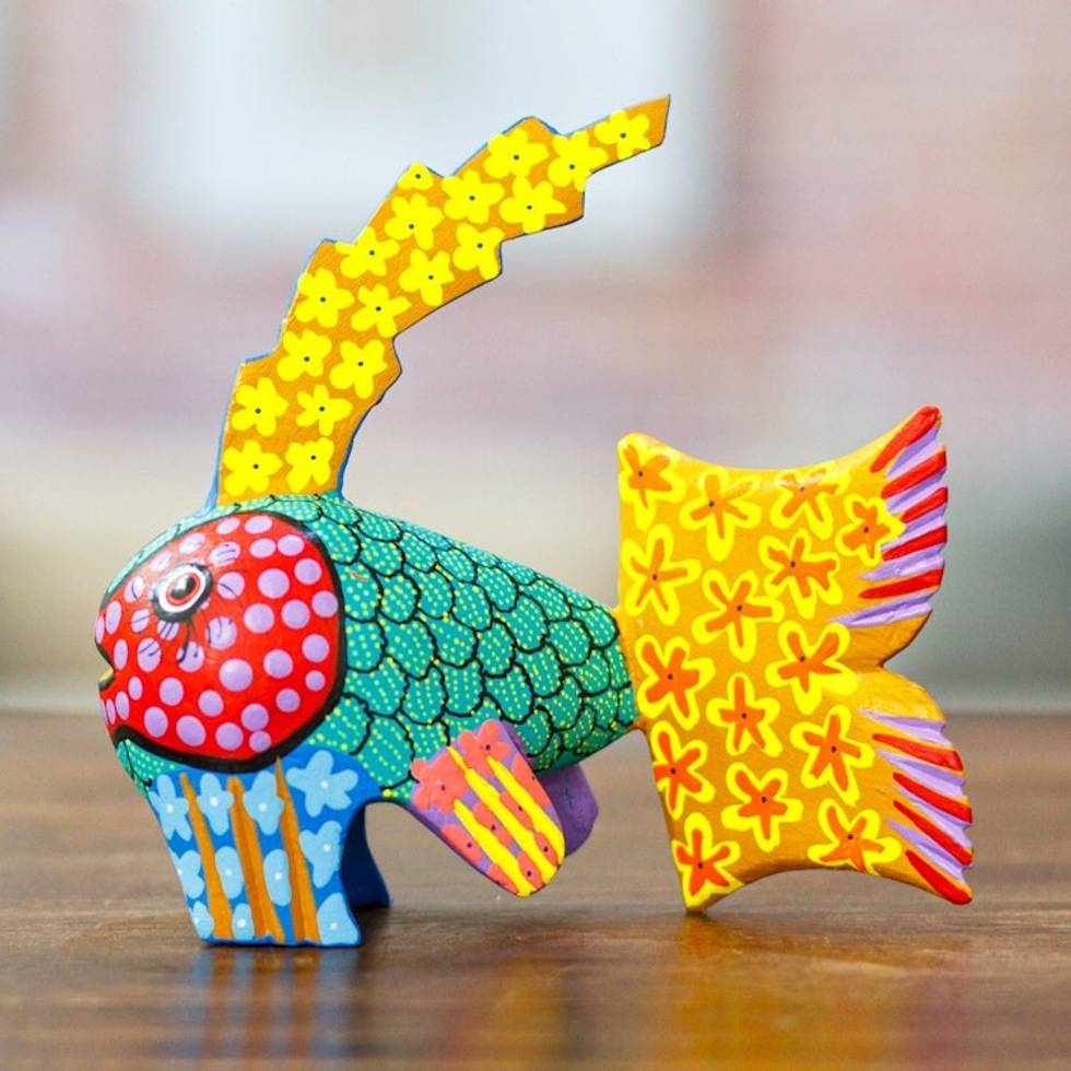 Colorful Wood Fish Alebrije Figurine Hand-Painted in Mexico 'Petite Fish in Aqua' Item ID: 2671807656