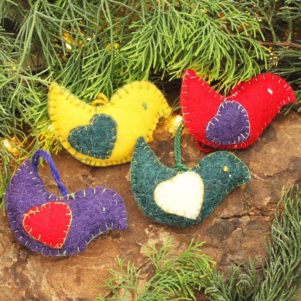 Colorful Wool Felt Holiday Dove Ornaments Set of 4 'Messengers of Peace' Item ID: 2671793052