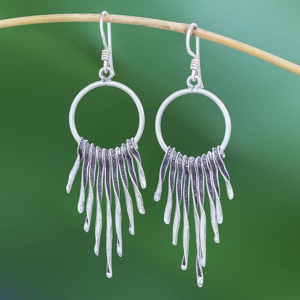 Combination-Finish Karen Silver Waterfall Earrings 'Dark Cascade' Item ID: 2671798864