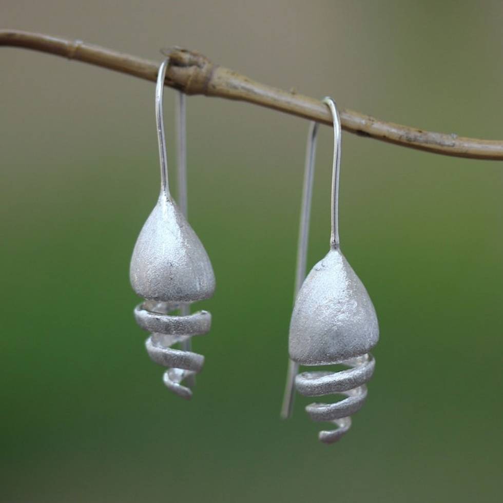 Combination Finish Spiral Shape Sterling Silver Earrings 'Glittering Snail Spiral' Item ID: 2671735393