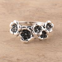 Combination Finish Sterling Silver Cocktail Ring from India 'Floral Contrast' Item ID: 2671792770