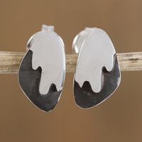 Combination Finish Sterling Silver Stud Earrings from Mexico 'Mountain Summits' Item ID: 2671808853
