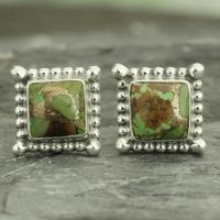 Composite Green Turquoise Stud Earrings Handmade in India 'Magical Green' Item ID: 2669925190