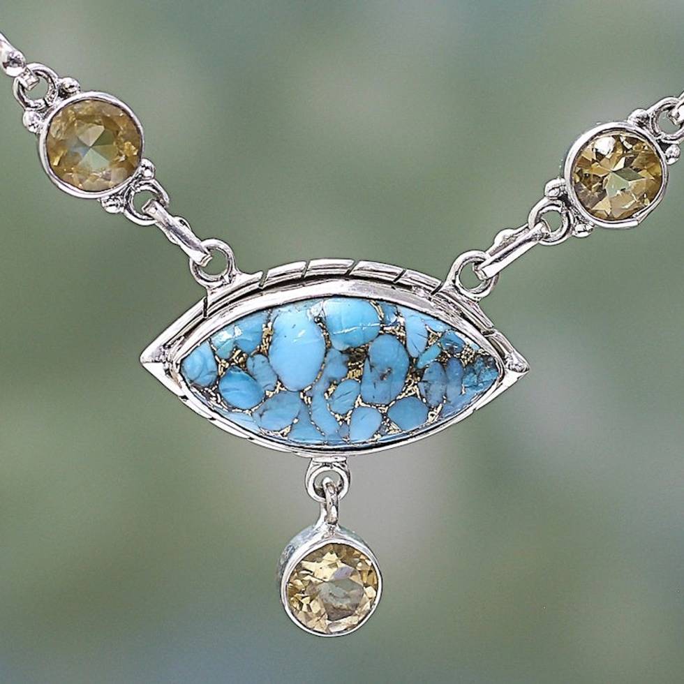 Composite Turquoise and Citrine Pendant Necklace India 'Protective Eye in Light Blue' Item ID: 2671793787