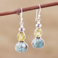 Composite Turquoise and Citrine Silver Dangle Earrings 'Sparkling Energy' Item ID: 2671789877